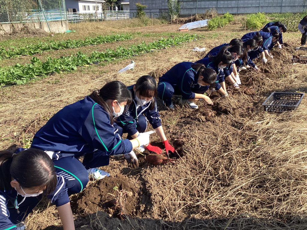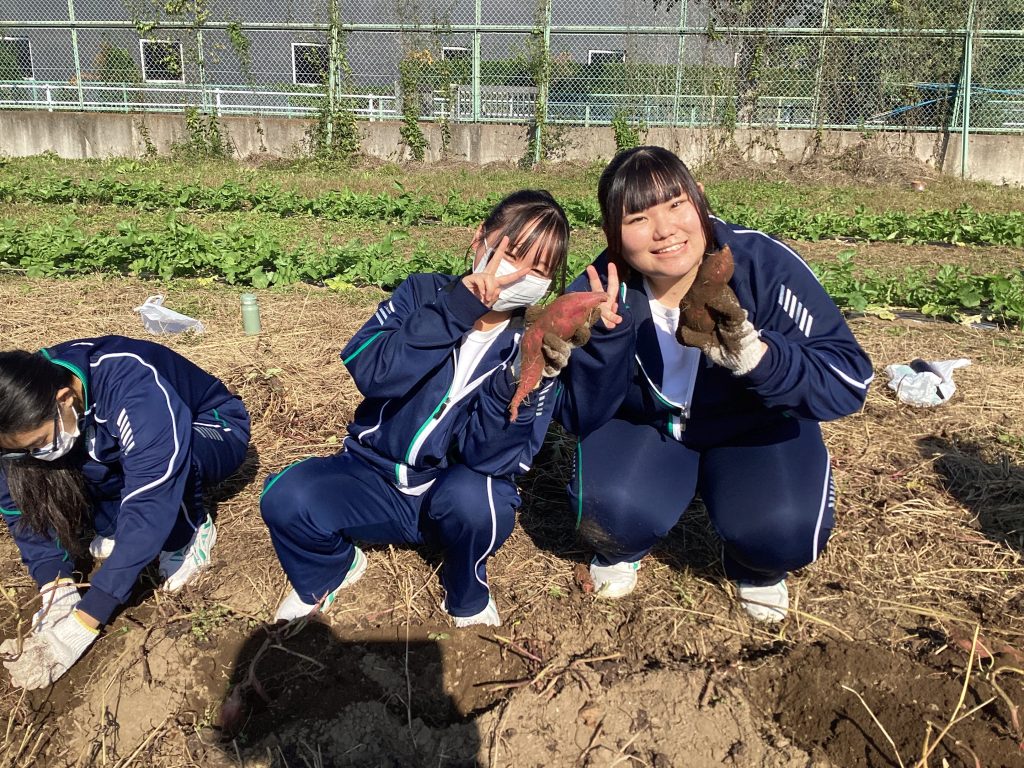先日、生活デザイン科スイーツプロデュースコース・食物調理コースの2年生が、6月に植えたさつまいもの収穫を行いました!