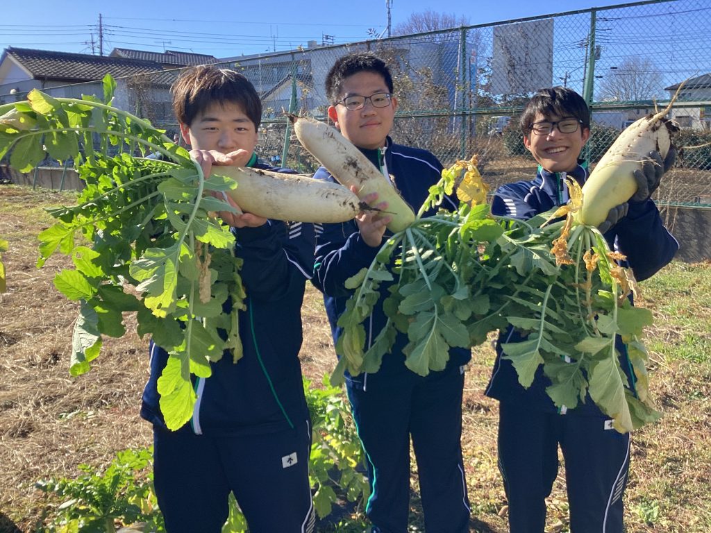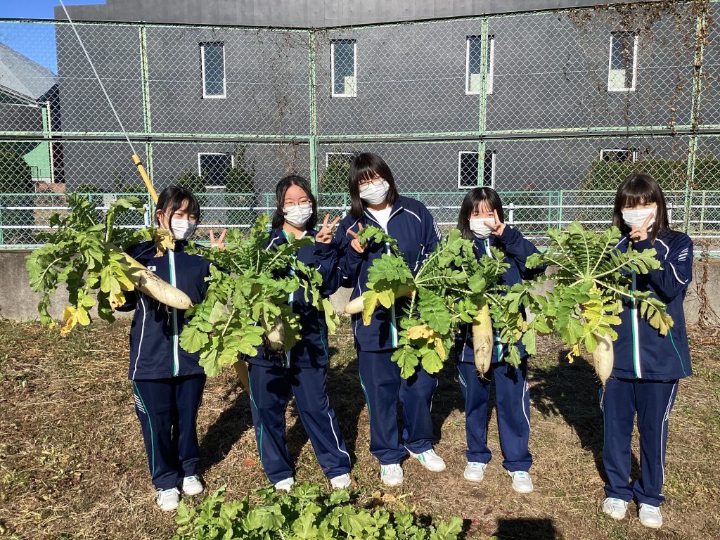 大根、大豊作です! 2025/12/24 イベント 生活デザイン科の1年生が秋に種を蒔いた大根が、先日収穫されました! 今年は大豊作!立派な大根を何本も収穫することができました。 野菜を作ることで土に触れ、普段出来ないような貴重な経験をすることができました。