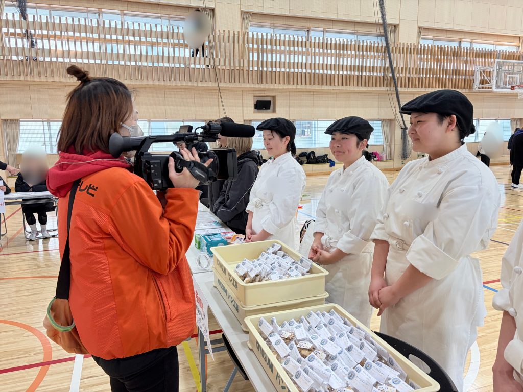 「参加賞」として、本校スイーツ・プロデュースコースの生徒たちが手作りしたクッキーを配りました。