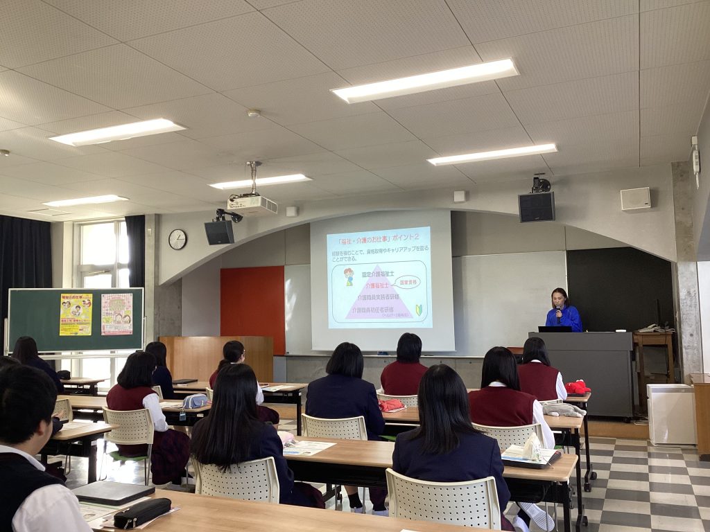 先日、生活デザイン科2,3年生のライフプロデュースコース・スイーツプロデュースコースの生徒を対象に福祉・介護のお仕事出前講座が行われました!