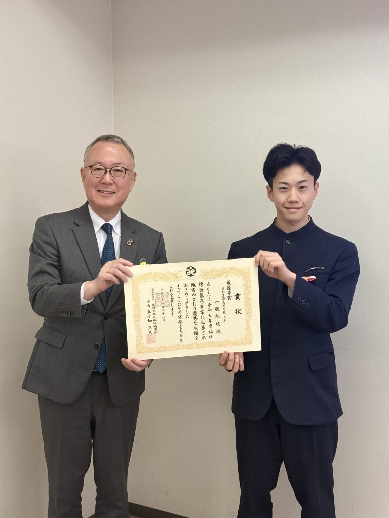 普通科2年生スポーツ特待クラスの二瓶翔琉さんが、令和7年度福祉標語で見事最優秀賞を受賞しました!